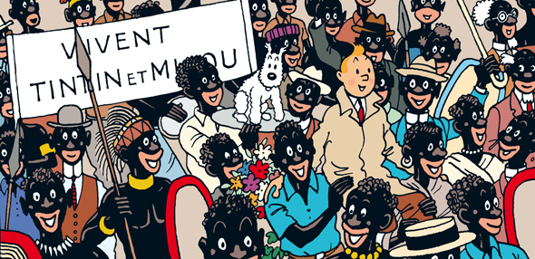 La plus parfaite illustration de l’ensemble de ces stéréotypes est très certainement l’album de bande-dessinée Tintin au Congo, prépublié en 1930 avant d’être réédité en 1946. Au moment des indépendances africaines, Hergé n’échappera pas à la critique et se verra taxé de racisme. Ce à quoi le dessinateur répondit : « toutes les opinions sont libres, y compris celle de prétendre que je suis raciste… Mais enfin, soit ! Il y a eu Tintin au Congo, je le reconnais. C’était en 1930. Je ne connaissais de ce pays que ce que les gens en racontaient à l’époque : les nègres sont de grands enfants. Heureusement pour eux que nous sommes là ! Et je les ai dessinés, ces Africains, d’après ces critères-là, dans le pur esprit paternaliste qui était celui de l’époque, en Belgique. »