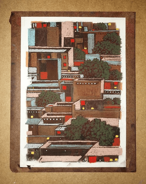 Khalid Abdel Rahman is a fine artist based in Khartoum, Sudan. According to The Arts Council of New Orleans, who hosted last summer the exhibition A Disappearance, he « has a highly distinctive signature style of abstract architectural scenes of middle class neighborhoods in Khartoum. Documenting a middle class that is slowly disappearing due to either working with the government or leaving the country searching for a better living situation. The brightly sad coloring of these empty neighborhoods reflects the reality of a disappearing class and people. Like a surreal scene from a memory you saw in a dream. » Nothing to add… The talented artist has humbly accepted to open up to Scribouille.