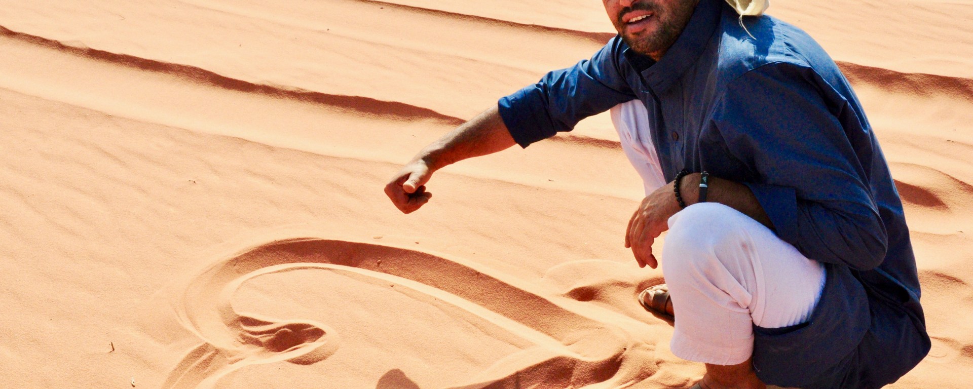 Le convaincre, ainsi que ses frères, de le laisser partir en balade loin des sentiers battus par les 4×4 n’aura pas été une mince affaire. Il aura tout d’abord fallu parlementer par courriel, en vain, pour en arriver à un « venez, on verra bien ce qu’on peut faire » qui ne pouvait guère m’enthousiasmer. Sur place, la négociation fut plus complexe encore : Ramadan, sécurité, canicule à venir… Surtout, je finis par comprendre en quoi mobiliser ce bon Akram pour ce seul journaliste français (qui ne leur promet pas de leur faire de la publicité), alors que le même homme pourrait balader six ou huit personnes à la fois dans son pick-up dans cette farandole ininterrompue entre trois pétroglyphes, deux dunes et une vague ruine ayant éventuellement vu le fameux Lawrence d’Arabie préparer ses plans de guerre ou simplement se soulager, n’est par rentable pour la petite famille. Compréhensible. Du coup, seule une liasse d’euros est parvenue à convaincre mes hôtes du bien fondé de mon projet et de ma volonté d’évasion du potentiel piège touristique.